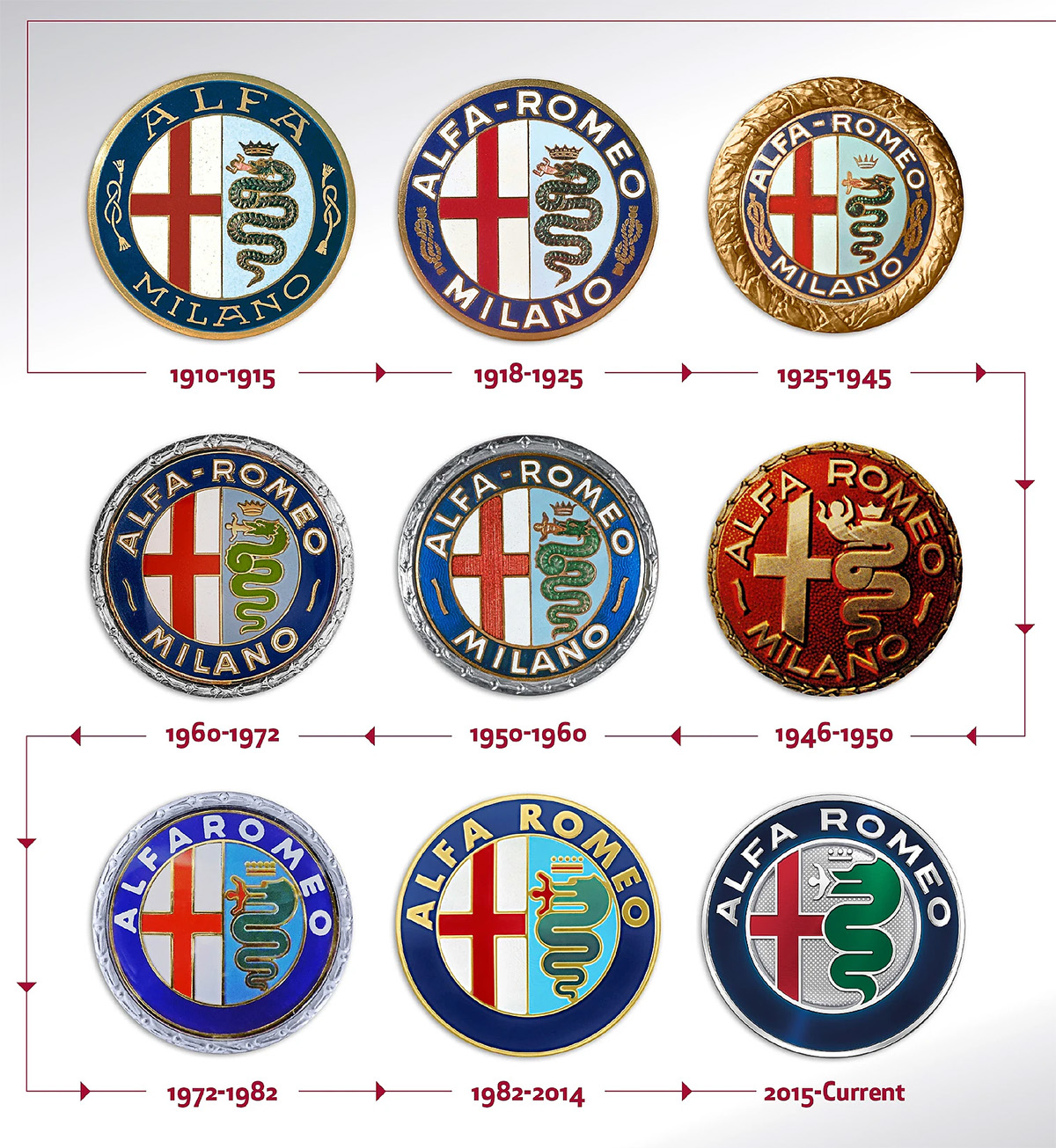 Το 1910, στο Μιλάνο, ο γραφίστας Romano Cattaneo σχεδίασε το πρώτο έμβλημα της νεοσύστατης A.L.F.A. (Anonima Lombarda Fabbrica Automobili).